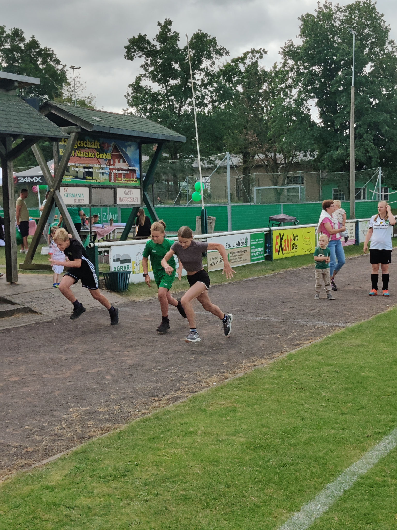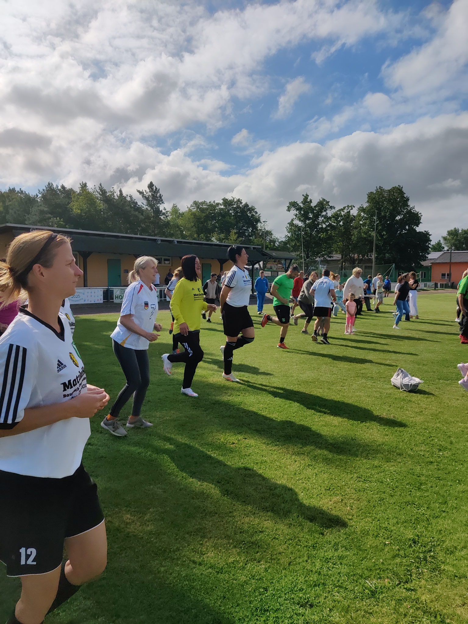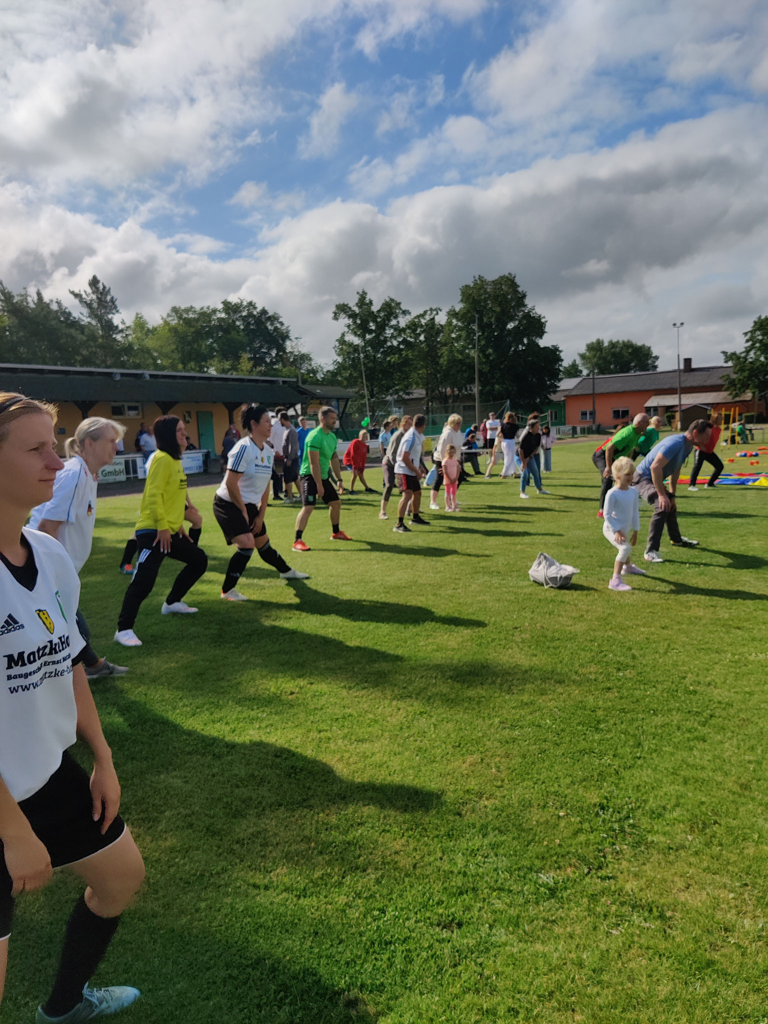 Eröffnet wurde das Fest planmäßig um 10.00 Uhr mit einer kurzen Begrüßung durch den Vorstandsvorsitzenden des SV Germania Klietz Tobias Koch und einer intensiven Erwärmung angeleitet durch die Vorsitzende des Fördervereins „Waldstörche“ Anja Fenn. Dies war der Startschuss für den sportlichen Wettstreit der Familien aus der Gemeinde und dem Umland. Fünf Aufgabenbereiche mit insgesamt 20 verschiedenen Stationen boten allen Teilnehmenden ein umfangreiches Spiel- und Sportangebot. In den Disziplinen Ausdauer, Schnelligkeit, Kraft, Geschicklichkeit und Kindersport konnten alle Teilnehmenden ihr Können unter Beweis stellen. Neben den sportlichen Stationen gab es für die fußballbegeisterten Zuschauer gleichzeitig noch ein Kleinfeldturnier der Damen des SV Germania Klietz zu sehen, deren Einladung der Mögeliner SC und Eintracht Walsleben gefolgt waren. Hierbei zeigten sich die Damen aus Klietz als würdiger Gastgeber und reihten sich am Ende hinter der unschlagbaren Eintracht aus Walsleben auf Platz 2 ein. Geleitet wurden alle Partien vom SV Germania Klietz Schiedsrichter Hauke Bederitzki.