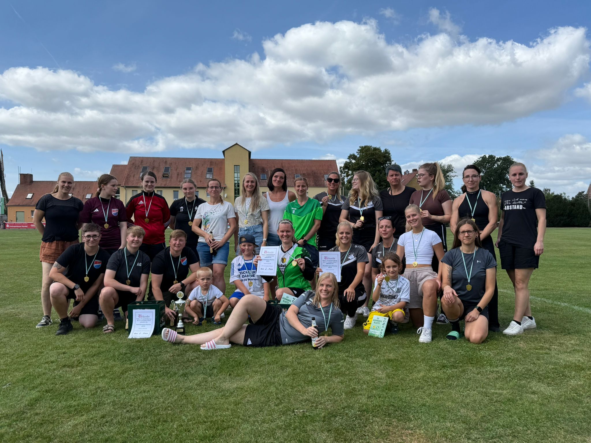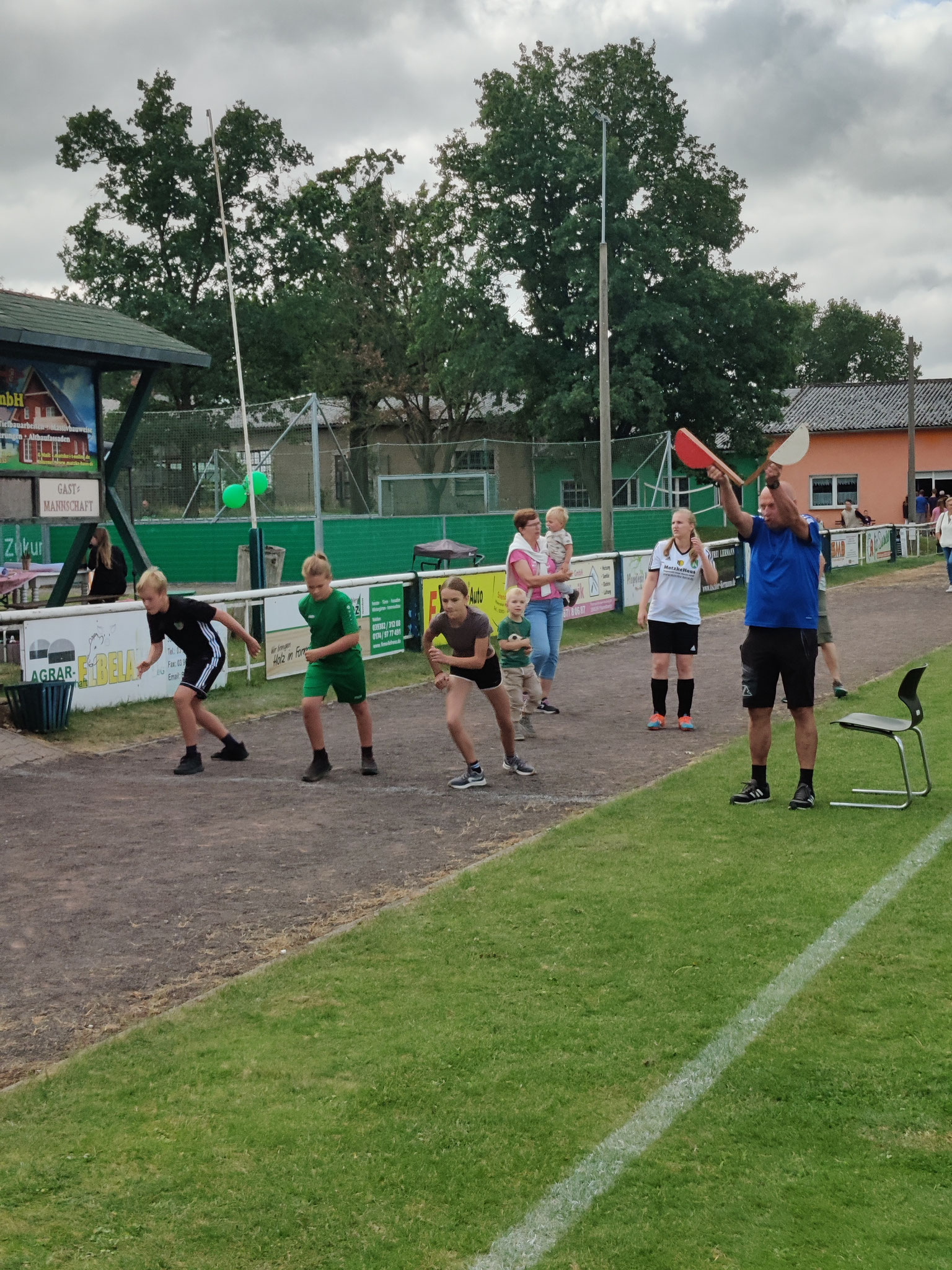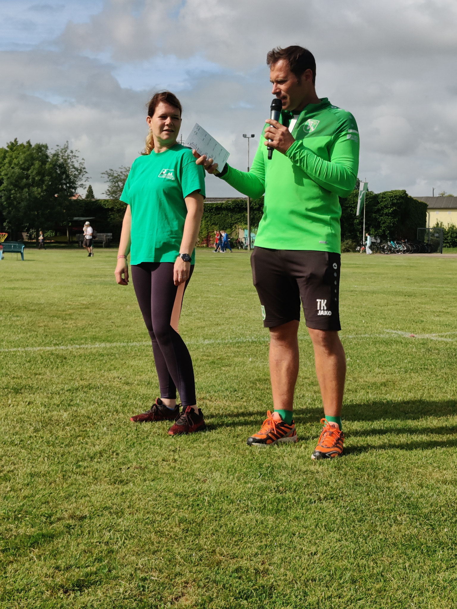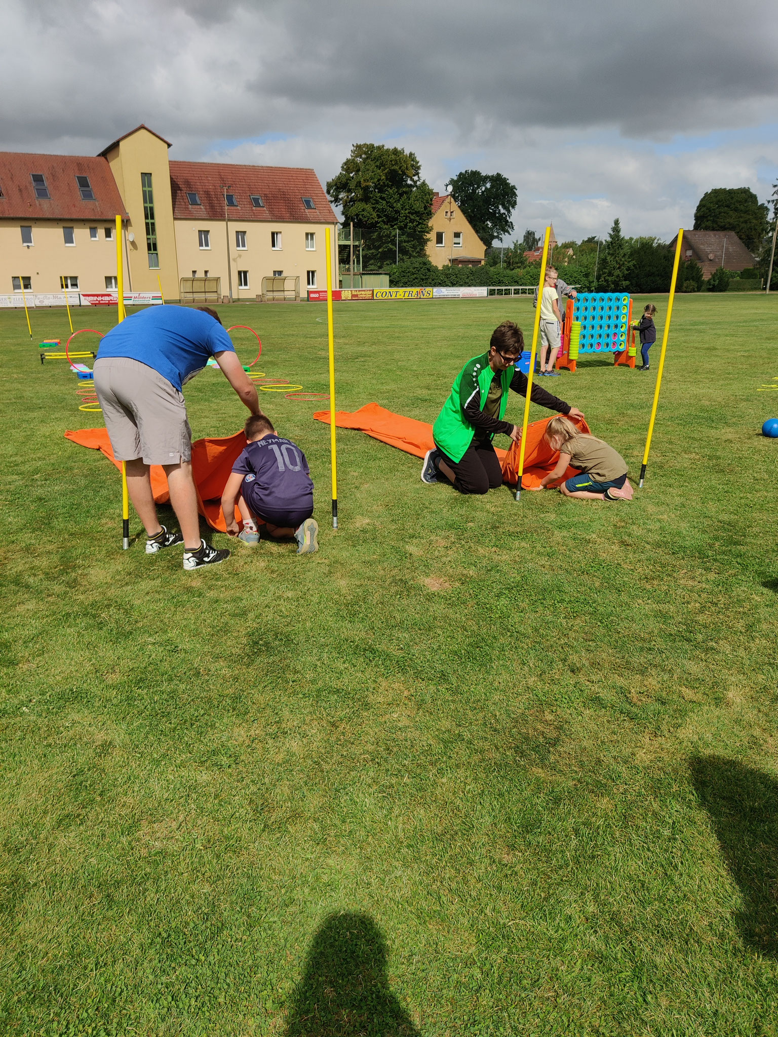 Eröffnet wurde das Fest planmäßig um 10.00 Uhr mit einer kurzen Begrüßung durch den Vorstandsvorsitzenden des SV Germania Klietz Tobias Koch und einer intensiven Erwärmung angeleitet durch die Vorsitzende des Fördervereins „Waldstörche“ Anja Fenn. Dies war der Startschuss für den sportlichen Wettstreit der Familien aus der Gemeinde und dem Umland. Fünf Aufgabenbereiche mit insgesamt 20 verschiedenen Stationen boten allen Teilnehmenden ein umfangreiches Spiel- und Sportangebot. In den Disziplinen Ausdauer, Schnelligkeit, Kraft, Geschicklichkeit und Kindersport konnten alle Teilnehmenden ihr Können unter Beweis stellen. Neben den sportlichen Stationen gab es für die fußballbegeisterten Zuschauer gleichzeitig noch ein Kleinfeldturnier der Damen des SV Germania Klietz zu sehen, deren Einladung der Mögeliner SC und Eintracht Walsleben gefolgt waren. Hierbei zeigten sich die Damen aus Klietz als würdiger Gastgeber und reihten sich am Ende hinter der unschlagbaren Eintracht aus Walsleben auf Platz 2 ein. Geleitet wurden alle Partien vom SV Germania Klietz Schiedsrichter Hauke Bederitzki.